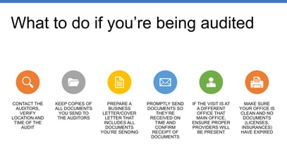 - If you have PTAs and Students, ensure supervision and what is being billed is in line; Medicare will look at your schedule during an audit